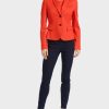 naisellinen leikattu bleiseri, joka on valmistettu pehmeästä viskoosiseoksesta elastaanin kanssa. Kehonhudotusmuoto luodaan prinsessa-saumoista etu- ja takaosissa. Erittäin tyylikäs: kapea, huivikaulusmuotoinen läppel. Koristavat yksityiskohdat ovat koristeelliset läpät ja vastakkaiset värilliset painikkeet. Olkapää ja hihat on vuorattu helpommin asettamiseksi ja lähtöä varten.