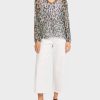 Marc Cain -kokoelmat Etniset yksityiskohdat sisältävät vyötärön laskospisteen ja hihan heman pitsikoristeet. Pusero on valmistettu liinavaatteiden ja viskoosin sekoituksessa, mikä antaa sille kevyen ja viileän tunteen ihoa vasten.