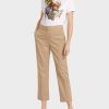 Marc Cain -kokoelmat Tyyli määrittelee suora jalka ja vyötärönauhan piilotettu painike. Kohdassa on neljä taskua.