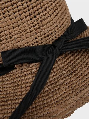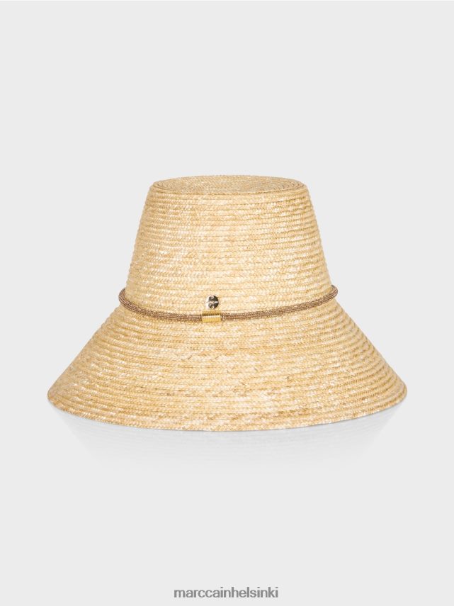 Marc Cain -kokoelmat Johto leikataan strassilla ja toimii hattubändinä. Tämä auringonhattu on valmistettu luonnollisesta olkista.