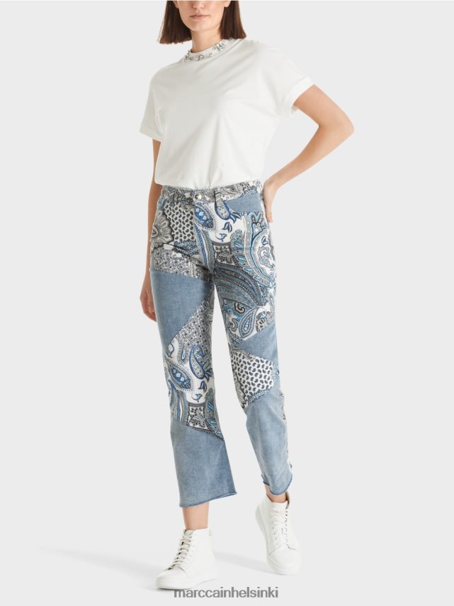 fyli -farkut rento tilkkutähden tyyli, Paisley -kuviolla ja jolla on naisellinen istuvuus. Pienet reunat korostavat viileää ilmettä. Kohde sisältää viisitaskun muoto ja kiinnittyy vetoketjulla ja kiiltävällä painikkeella.