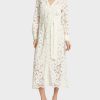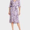 Marc Cain -kokoelmat Sekä materiaalinen rakenne että suunnittelu Hark takaisin tähän aikaan. Yläosa on muotoiltu prinsessa -saumoilla, jotka siirtyvät leveisiin heilahtelupaneeleihin alaosassa. Mekko kiinnitetään takaosaan saumalla vetoketjulla. Hame -helmassa on viileitä reunoja ja käsivarren reikiä.