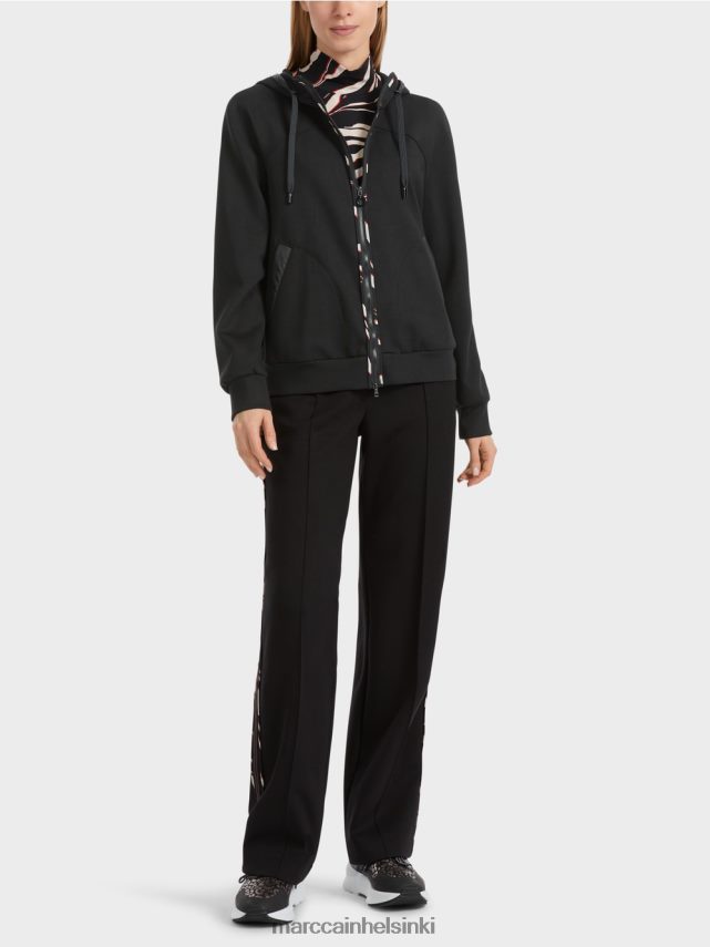 Huputetulla takilla on yksityiskohtainen viimeistely. Esimerkiksi huppu on vuorattu verkolla ja siinä on kirjaaja vastakkaisessa materiaalissa. Kaltevat taskut on myös valmistettu samasta materiaalista. Kuvioidut pakettiarvot koristavat vetoketjulliset reunat, takin sisällä olevan verkon vuorauksen keskusta ja reunat.