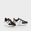 liukuva valmentajat mesh-insertillä ja joustavalla johdolla nauhalla. Näillä kouluttajilla on kevyt profiiliprofiili ja ne on mukavasti pehmennetty. Niissä on vastakkaiset mokkanahkaiset yksityiskohdat. Joustava johdon nauhoitus tekee niistä helppoa laittaa.