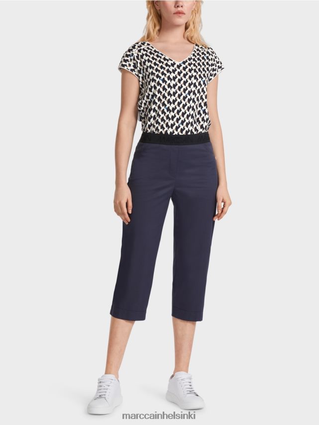leveäjalkaiset housut puuvilla- ja viskoosiseoksessa. Nämä housut ovat melko urheilullisia joustavan Marc Cain -vyötärönauhan kanssa. Sopivasti ne on valmistettu joustavasta materiaalista. Leveä housujalka on kullakin rako. Ja vaikka keinutaskut ja edessä olevat kärpäsen ovat vain koristeellisia, housuissa on takaosassa laastaritaskut.