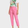 Marc Cain -kokoelmat Nämä värikkäät housut on suunniteltu ylä- ja puristetuilla ryppyillä. Heillä on erittäin mukava istuvuus pienen venytyspitoisuuden ja piilotetun joustavan vyötärönauhan ansiosta. Hieman leimahtuneet helmet luovat nykyaikaisen ilmeen. Housut kiinnitetään vetoketjulla ja vyöllä sen mukaan, kuinka muotoilet ne.