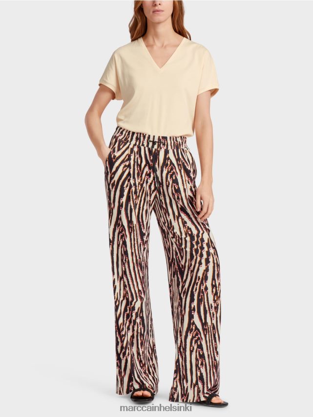 Teema: Afrikkalainen satu Ne on valmistettu viskoosista ja niillä on pehmeästi virtaava siluetti. Vyötärön leveyttä voidaan säätää kahdella vyötärölaskosella ja lenkkeily vyötärönauhalla, jolla on puristin. Housuissa on kaksi upotettua sivutaskua.