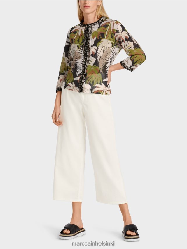 Marc Cain -kokoelmat Siinä on runsas leikkaus ja se on reunattu sävy-sävyrajoilla. Painikkeet ovat kankaan peitettyjä ja niillä on filigraaninen Marc Cain -kirjaimet metallissa. Neuletakki on “neulottu Saksassa”. Se on neulottu ja viimeistelty Saksassa uusimman tekniikan avulla, ja yksittäiset kappaleet, kuten hihat ja edessä olevat jne.