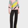 Marc Cain -kokoelmat Leikkisä kuoren koristelu Lurexin kanssa pyöreällä kaulalla, samoin kuin käsivarsi -hihansuut antavat tälle villapaitalle leikkisän hohdon. Sopivasti sen mukana tulee myös hunajakennokuvio 3D: ssä. Teos on “neulottu Saksassa”: Lankojen neulonta ultra-modernissa neulontakoneissa ja kankaiden viimeistely suoritetaan Saksassa. Yksittäiset osat, kuten hihat, etuosa jne., Ommeltaan yhdessä eurooppalaisissa kumppaneissa.