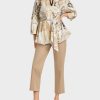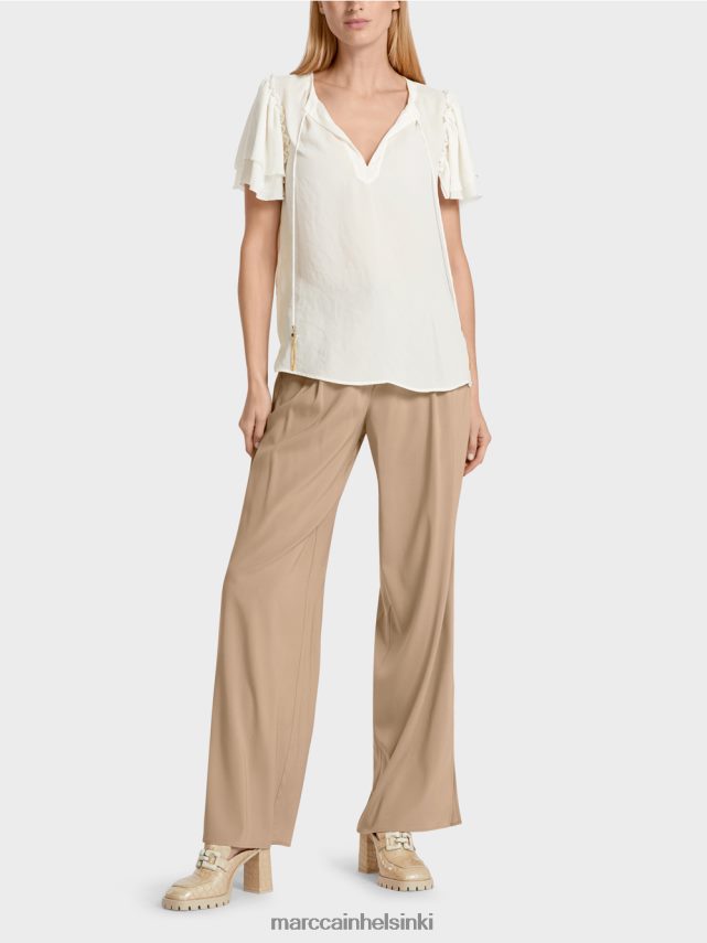 Marc Cain -kokoelmat Ensisijaisesti kierrätetystä polyesteristä valmistettuna sillä on vertaansa vailla kevyt ja pehmeä luonne. Leveys voidaan säätää keräämällä pääntie. Korkkiholkit on viimeistelty kellonmuotoisina. Pusero on kiinnitetty nauhalla kaulan niskassa. silmiinpistävä: nauhojen lopussa oleva tupsumainen koriste-elementti.