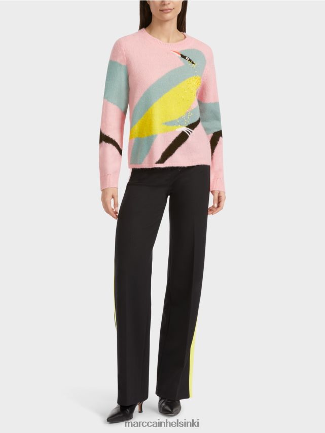 Marc Cain -kokoelmat Puseron etuosassa oleva iso lintu-aihe on todellinen näkökulma. Värikäs muotoilu on myös miellyttävä. Pyöreä pääntie ja löysä siluetti ovat hienovaraisesti hillittyjä. Yläosa vakuuttaa myös Marc Cainin kestävän kehityksen etiketin “uudelleentarkastelua”.