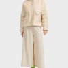 tikattu vyötärö kantaa kestävän kehityksen etiketti “uudelleenkäytäntöä”. Ulkokangas ja vuori on valmistettu kierrätetyistä kuiduista. Täyttäminen on valmistettu myös kierrätetyistä kuiduista, eikä se ole eläinperäistä. Mallissa on stand-up-kaulus ja se kiinnittyy kaksisuuntaisella vetoketjulla. Kauluksen alueella vetoketjullinen verhoilu on ristiriidassa ja painettu Marc Cain -kirjeellä. Sivulla liivissä on vetoketjutaskut, jotka on integroitu saumaan.