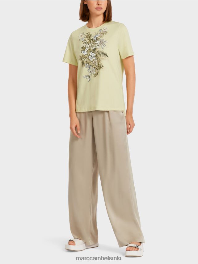 Marc Cain -kokoelmat Se leikataan klassisesti sivurakoilla ja hiukan pidempi osa takana. Marc Cain -kirje on kukka -aihe. T-paita on erittäin helppo käyttää ja se tekee loistavan yhdistelmäkumppanin.