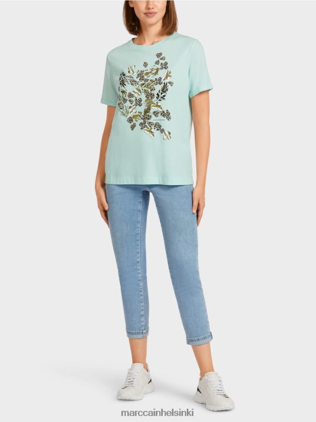 Tämä t-paita on löysä ja enimmäkseen klassinen suunnittelussa. Hihansuut, joissa on puolipitkä hihat, antavat sille yksilöllisen ilmeen. Edessä olevassa tulostuksessa on tyyliteltyjä eläinten ihokuvioita kukkaisella kosketuksella luodaksesi WOW -tehosteen. Strassien applikaatiot lisäävät ripauksen ylellisyyttä. Tämä t-paita kantaa kestävän kehityksen etiketti “uudelleenkäytäntöä”.
