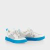 Marc Cain -laukut ja kengät Näissä pitsi-kouluttajissa on ilmava verkko ja ne ovat täydellisiä kesäiseen ulkonäöön. Ne ovat klassisessa pyöreässä, hieman korotetussa pohjassa. Tämä on tyypillisessä valkoisessa ja siinä ei liukuta veitsen leikkausprofiili. Nahkaisilaat ja kiiltävä MC -logo nauhoilla lisäävät tyylikkäitä aksentteja.