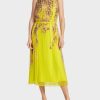 Marc Cain -kokoelmat Se on koottu vyötärön saumaan. Vyötäröä voidaan korostaa käärevyöllä. Mekko on kiinnitetty sivuvetoketjulla ja urheilee ruched -pääntie. Hihat ovat pituudet ja ne on viimeistelty joustavalla helmalla.