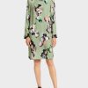 Tämä mekko on op-taiteen kuvio ja se on leikattu 1970-luvun tyyliin. Bodicen löysyys antaa sille nykyaikaisen ilmeensä yhdessä yksityiskohtien, kuten stand-up-kauluksen, pintucks ja porrastetun hame, vastakkainasettelun kanssa. Hihan helmassa on joustava koriste.