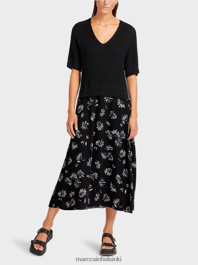 Rento -siluetti luodaan kevyet ja pehmeät materiaalit, mikä antaa tämän ilmeen viettelevän tunteen. Pusero ja hame on ommeltu yhdessä. Nämä kaksi osaa vastaavat myös väriä: hameen valkoista ja sinistä löytyy villapaita sivuraidasta. Kohde on neulottu ja valmis tiloissamme Saksassa. Yksittäisten kappaleiden jatkokäsittelyn suorittavat kumppaniyritykset Euroopassa. Tämä tekee tyylistä “neulottu Saksassa”.