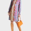 Mekko esitetään pistetulostuksella ja se on rento siluetti. Hihat ovat pitkät ja sysetyt päihin. Edessä oleva pitkittäinen laskos on ylimääräinen näkökulma.