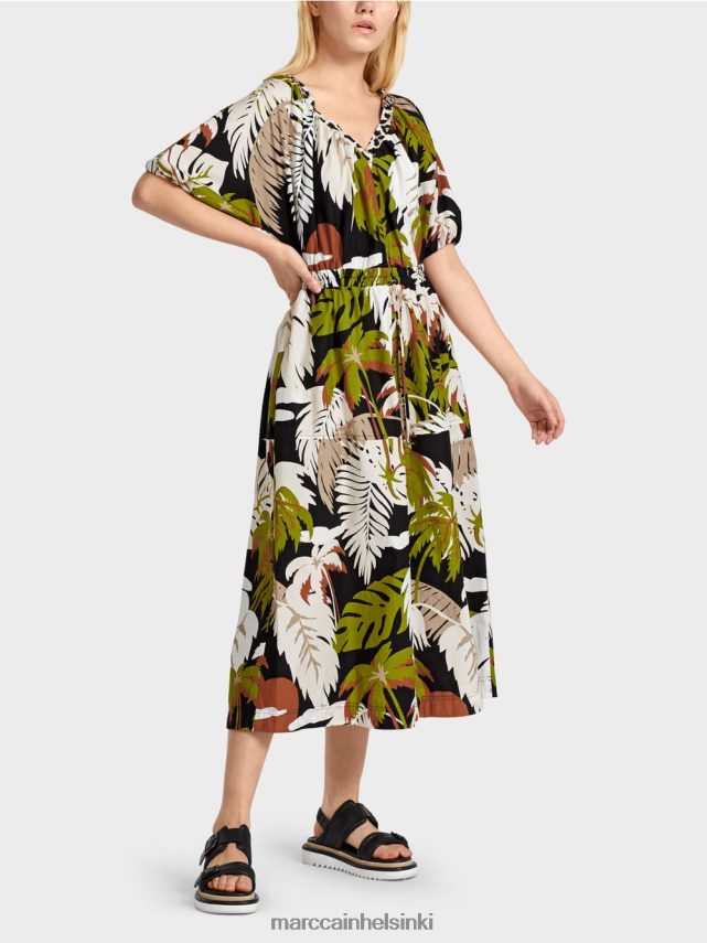Marc Cain Puuvillamekko lehtimallilla syvä oliivinvihreä vaatteet V0LL4885 Marc Cain Mekko
