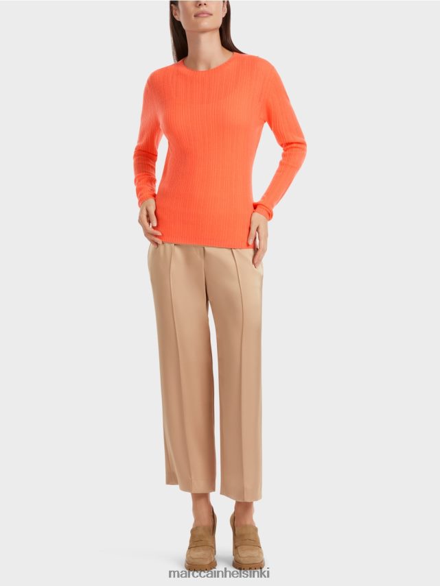 Marc Cain -kokoelmat Tämä hahmohuiuva villapaita esittelee itsensä satunnaisessa neulotussa suunnittelussa. Pyöreä pääntie ja pitkät hihat täydentävät ulkonäköä.
