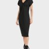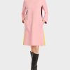 Marc Cain -kokoelmat Tämän mekon näkökulma on houkutteleva lintujen muotoilu värikkäässä koostumuksessa. Leveät hihat koristavat leveät hihansuut. V-kaula on hienovaraisesti reunattu vastakkaisiin väreihin. Pieni metalli -applikointi lisää leikkisä muotoiluelementti hameen helmaan.