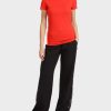 T-paita on valmistettu joustavasta puuvillasta ja leikataan lähellä vartaloa. Naisellinen muotoilu on määritelty -pituushihat ja hiukan pidennetty pääntie. T-paidan pyöreä kaula on reunattu, hihan helmet ovat auki ja ne voidaan taittaa.