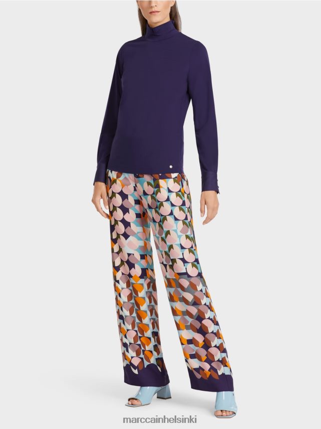 Marc Cain -kokoelmat Tämä tavallinen t-paita. Puuvillasta valmistettu se sijaitsee mukavasti joustavan elastane -sisällön ja rento siluetin ansiosta. Stand-up-kauluksessa on rako, joka korostaa tätä erinomaista mallia.