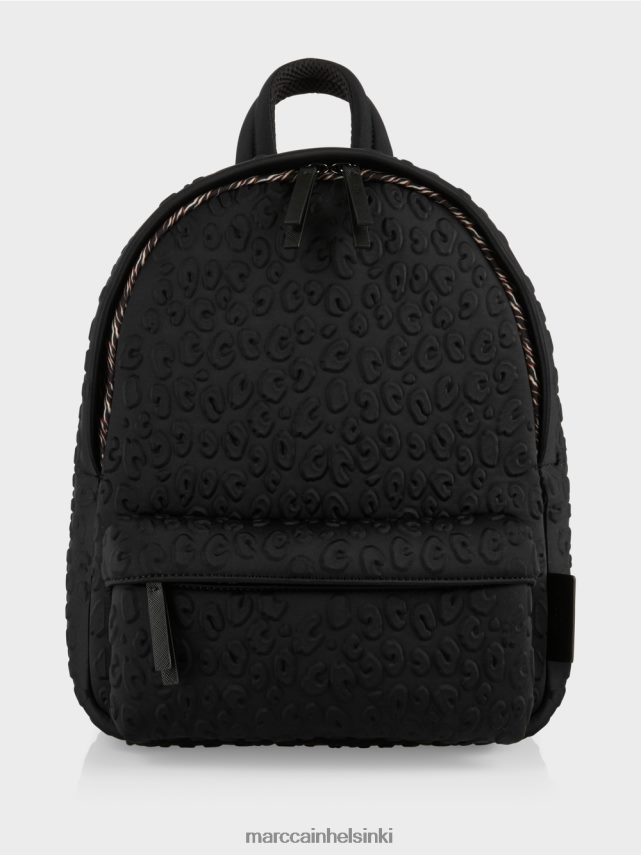 Reppu on valmistettu teknisestä materiaalista, joka tarjoaa sille vakaan muodon. Pinta on peitetty kaikkialla kohokuvioidulla mallilla. Edessä on muotoinen tasku. Koristeellinen: vetoketjut, joissa on muotoilu. Pehmustetut olkahihnat ja pehmustettu mesh -materiaali takana on mukava kuljettaa. Reppu on vuorattu ja siinä on sisätasku vetoketjulla.