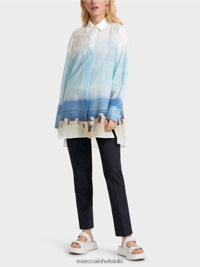 Marc Cain Tyylikäs pusero silkkipitoisuudella taivaansininen vaatteet V0LL48923 Marc Cain Helsinki