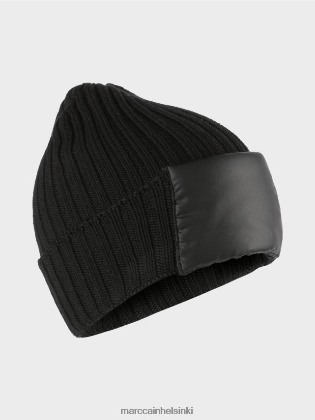 Marc Cain -kokoelmat Urheilullinen klassikko lämpimille korville on tämä villahattu uritetussa neulotussa kuviossa. Se on taitettu runsaasti reunaan, ja applikointi tarjoaa täällä erityisiä aksentteja.