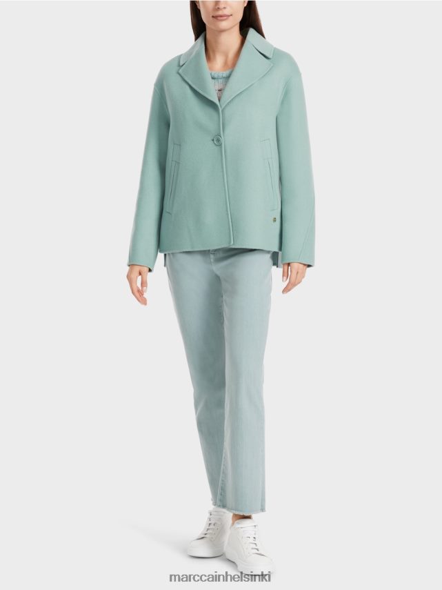 Marc Cain -kokoelmat Se esittelee itsensä leimattuun leikkaukseen ja laajennetulla takaisin. Laatikon laskos takana, samoin kuin raot korostavat yksinoikeutta. Kierto- ja nappikiinnitys ovat klassisia elementtejä. Ulkonäköä täydentävät mukavat sivutaskut.