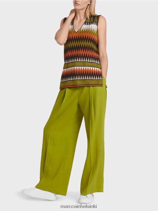 Marc Cain -kokoelmat sauma. Intensiiviset seitsemänkymmenenluvun värit ja siksak -kuvio luovat elinvoimaisen ilmeen, jota parannetaan kädenreiän viileät reunat. Pusero on neulottu ja viimeistelty tiloissamme Saksassa. Yksittäisten kappaleiden jatkokäsittelyn suorittavat kumppaniyritykset Euroopassa. Tämä tekee esineestä “neulottu Saksassa”.