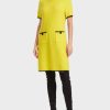 Mekko on valmistettu virtaavasta materiaalista ja siinä on vartaloa halattava siluetti. Vyötäröä korostetaan kapealla joustavalla vyötäröllä ja vyöllä. Kohde esittelee itsensä V-kaulusviivalla ja rako-hihansuut. Pieni logo -riipus asetetaan kaulaan.