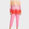 Marc Cain -kokoelmat Kukkatulostus on näkökulma. Kapeat hihansuut, joissa on pienet logo -painikkeet kevyessä kullassa, korostavat tyylikästä ilmettä.