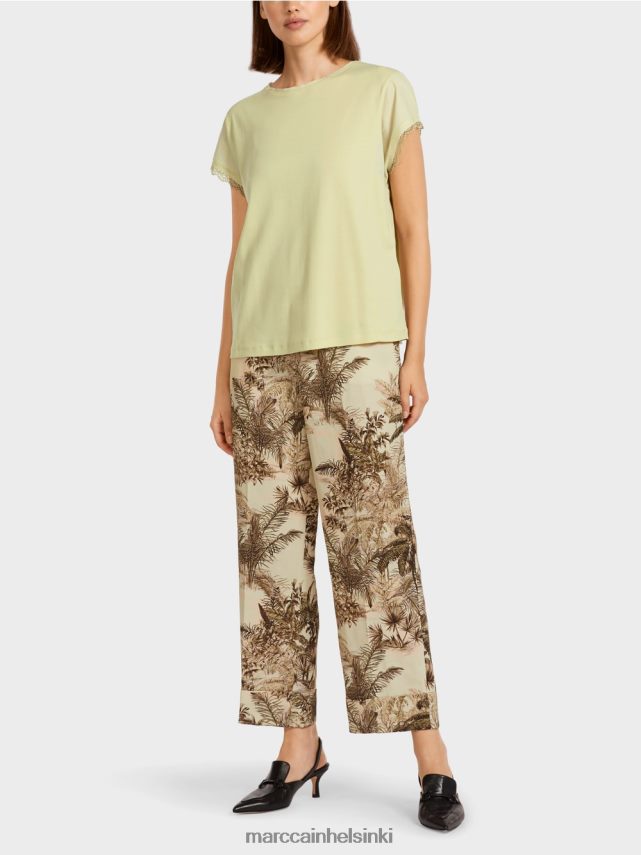 Marc Cain -kokoelmat Etu- ja takaosa on joustavassa puuvillaa ja pilkkihihat ovat puuvillakankaassa. Hihan HEM: llä on raaka reunapinta ja ne on aliarvioitu herkän pitsikoristeella. pääntie on herkkä puuvillakoriste.