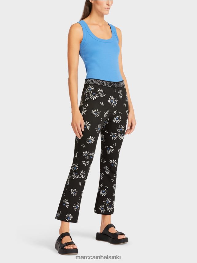 Elävä päivänkakkara -malli antaa näille housuille “vau” -tekijän. Tämän luodaan myös ohut muotoinen muoto ja hiukan leimahtava jalka, joka herättää muistoja 1960-luvun kukkavoiman tyylistä. Housut on valmistettu elastaanista ja niissä on joustava vyötärönauha.