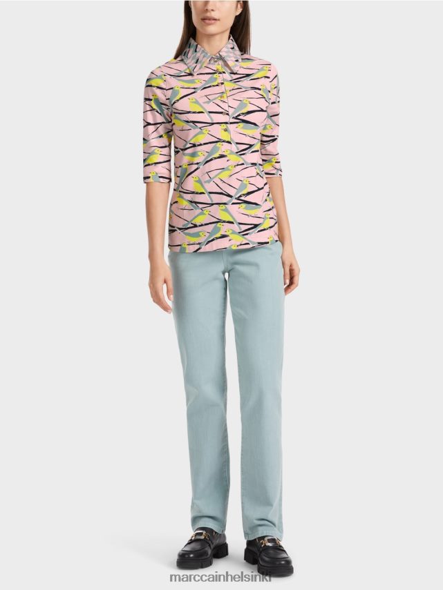 Marc Cain lintujen suunnittelupolopaita pehmeä jauhe vaaleanpunainen vaatteet V0LL481320 Marc Cain Vaatteet