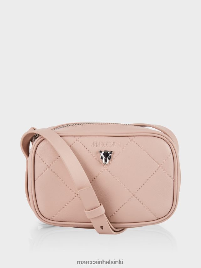 Olkalaukku on coid -muoto pyöristetyillä kulmilla. Diagonaalisen tikkauksen vuoksi sillä on vakaa muoto. Olkahihna on kiinnitetty pussin pohjaan ja menee sivuille. Koristeellinen elementti on Marc Cain Leo Design Head -metalli edessä. Kohde kantaa kestävän kehityksen etiketti “harkita uudelleen yhdessä”.