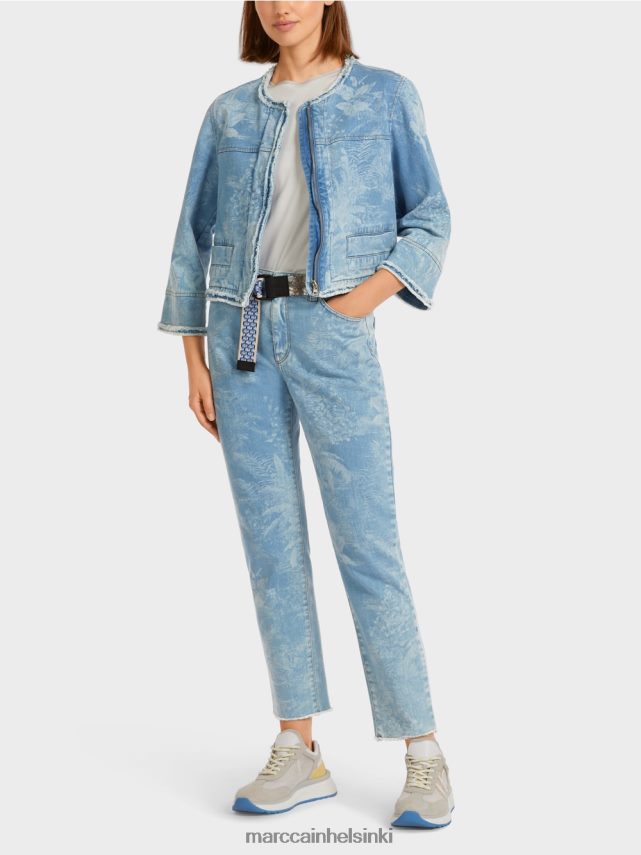 Marc Cain -kokoelmat Hienovarainen muotoilu perustuu valkaisutekniikkaan. Se on viimeistelty vastaavilla reunuskoristeilla. Yksityiskohdat sisältävät piilotetun painikkeen ja hitsataskut. Bolero kiinnittyy vetoketjulla.