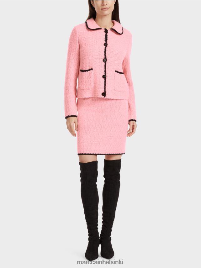 Marc Cain -kokoelmat Tämä vuorattu minihame neulotaan materiaaliseoksesta alpakan, villan, mohairin ja puuvillan kanssa ja on siten “neulottu Saksassa”: Lankojen neulonta ultra-moderniin neulontakoneisiin ja kankaiden viimeistely suoritetaan Saksassa. Yksittäiset osat, kuten hihat, etuosa jne., Ommeltaan yhdessä eurooppalaisissa kumppaneissa.