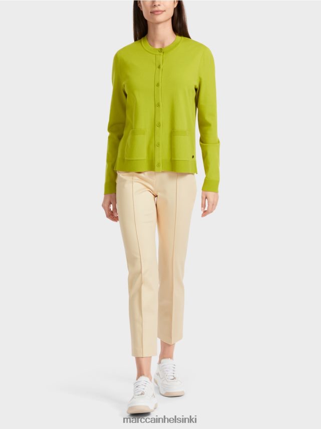 Viskoosipohjainen lanka on pehmeä ja vankka samanaikaisesti. Viskoosi on uusiutuva resurssi, ja neuletakki kantaa “uudelleentarkastelua” kestävän kehityksen etiketin. Se on myös neulottu ja koristeltu Saksassa. Yksittäisten osien jatkokäsittelyn suorittavat eurooppalaiset kumppaniyhtiöt. Tämä tarkoittaa, että neuletakki on “neulottu Saksassa”. Suunnittelu määritellään boxy -muodossa. Tätä korostaa edelleen erottuva painikeplaski ja uritettu helma.