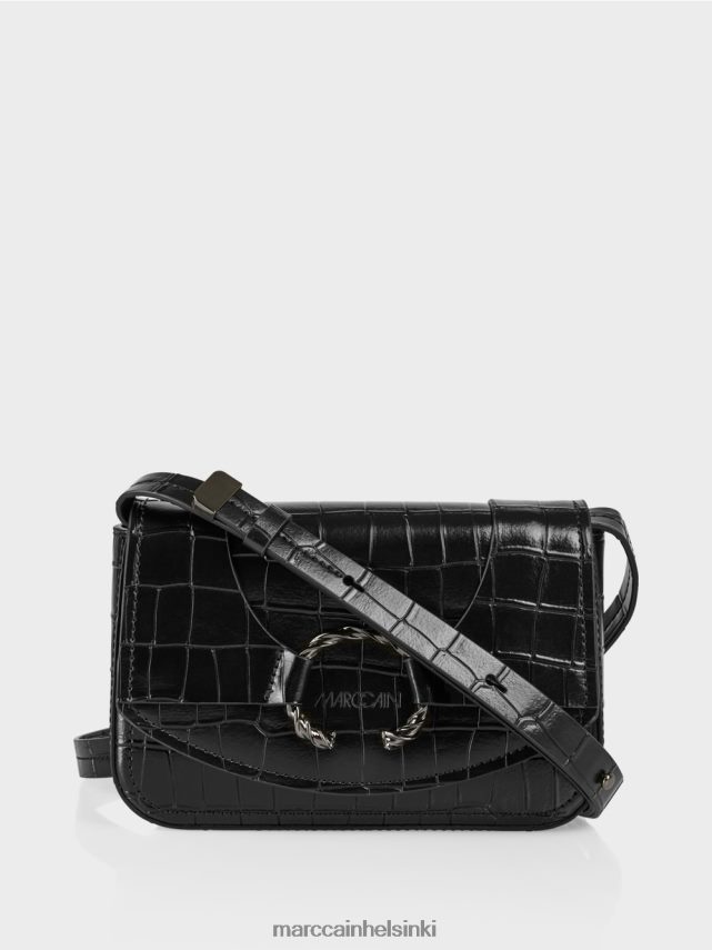 korkealaatuinen olkalaukku aitossa lehmännahkalla koriste-renkaassa. Tästä keskikokoisesta olkalaukusta tulee arvostettu lisävaruste sen krokotiilin vaikutuksen ansiosta. Koristeellinen kierretty metallirengaskehys huomattavasti kohokuvioidut MC -kirjaimet. Läppä on pyöristetty ja kiinnittyy puristimella. Sisällä on ylimääräinen vetoketjullinen lokero. Olkahihna on säädettävissä.