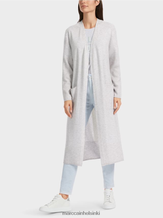 Marc Cain Pitkä neulottu “Mieti uudelleen” -takki hopeaharmaa vaatteet V0LL48333 Marc Cain Vaatteet
