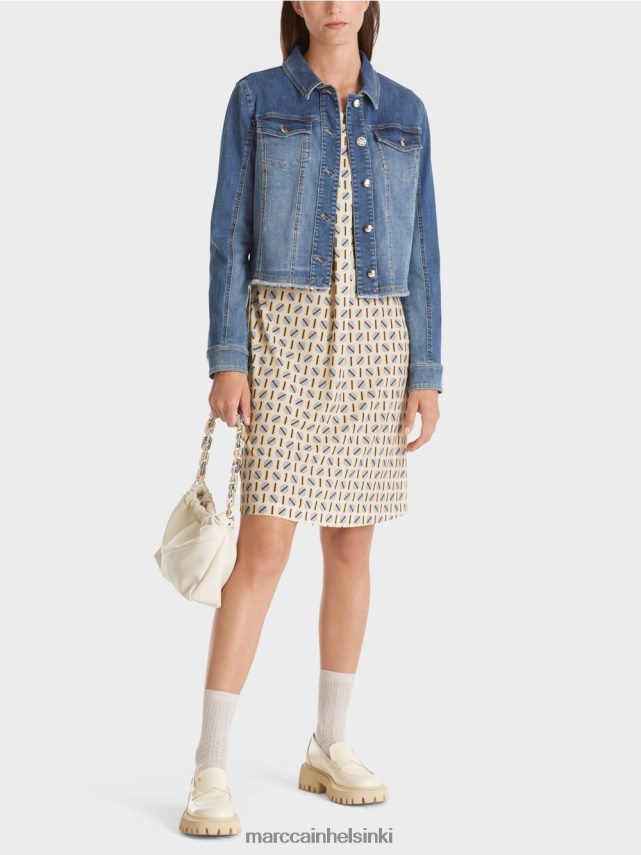 Mekko esitetään pistetulostuksella ja se on rento siluetti. Hihat ovat pitkät ja sysetyt päihin. Edessä oleva pitkittäinen laskos on ylimääräinen näkökulma.