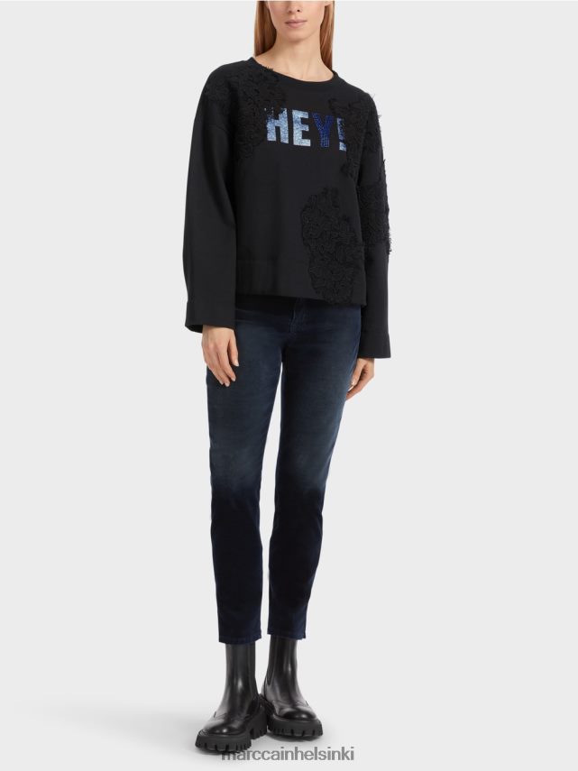 Piharipaita on valmistettu puuvillapohjaisesta jerseystä. Klassinen suunnittelu, se toimii tulostuksen ja sovelluksen kautta. Sovellettu pitsi näyttää siltä, että malli olisi muuttanut DIY (tee-se-itse). Kimaltimista ja kivistä valmistettu komentosarjatulostus lisää ripauksen glamouria.