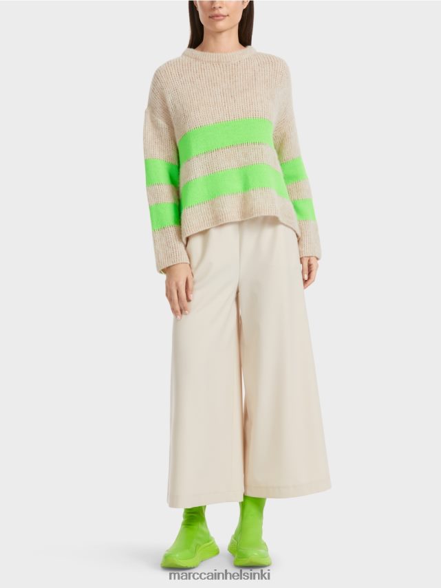 Pusero on neulottu pehmeästä langasta, jossa on alpaca -villapitoisuus. Hieno lanka ja löysä neulottu tekevät siitä erittäin pehmeän. Lohkon raita on neulottu sileäksi ja siksi erottuu värillisestä ja rakenteesta. Pusero on “neulottu Saksassa”: se on neulottu ja viimeistelty Saksassa nykyaikaisimpien tekniikoiden avulla, ja yksittäiset osat, kuten taka- ja etuosat jne., Ovat yhdessä eurooppalaisissa kumppaniyhtiöissä.