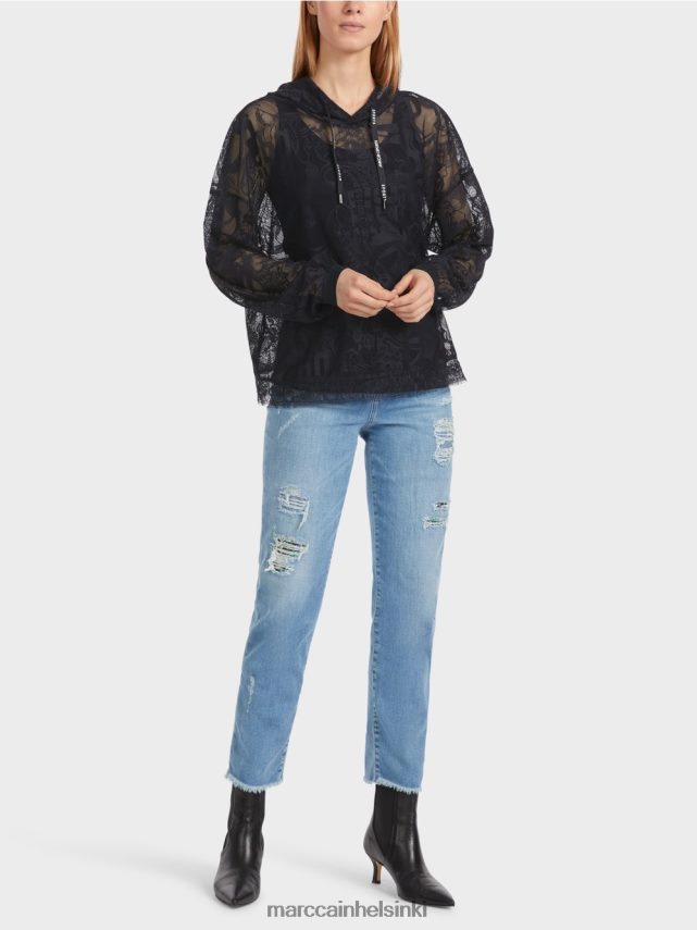 Piharipaita on valmistettu tylli -pitsistä. Aihe on inspiroinut mystisiä tatuointeja ja esitetään kietoutuneita kukkia ja lohikäärmeen kaltaisia olentoja. HEM: llä on herkkä pitsiraja, jota koristavat Marc Cain -kirjeet. Hihat kiinnitetään uritetulla mansetilla.