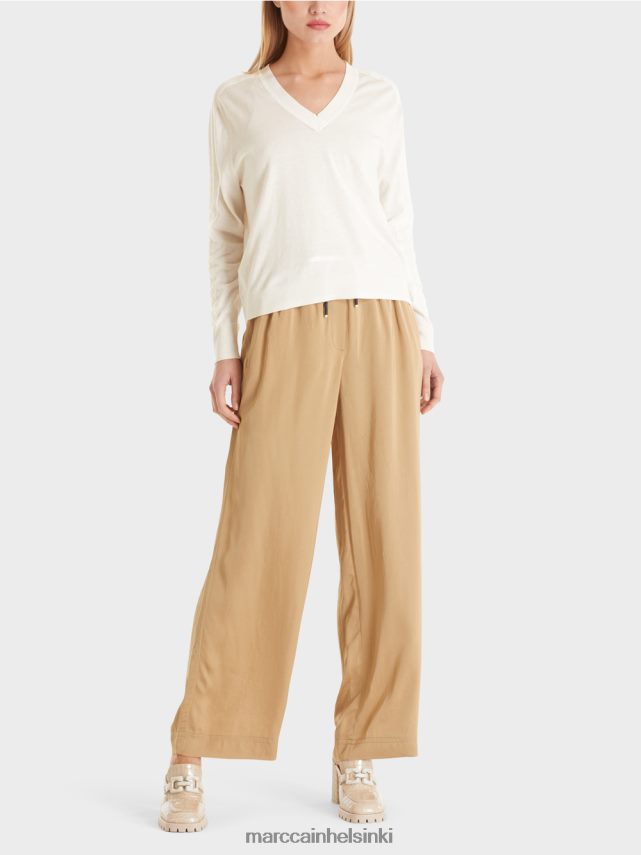Tämän villapaita virtaava siluetti johtuu hienosta sekoituksesta puuvilla- ja silkkilankoja. Hartioilla ja hihat kulkeva kuvioitu kuvio lisää hienovaraisen yksityiskohdan. Kaulatie, hihat ja helma on viimeistelty klassisesti uritetuilla hihansuilla.
