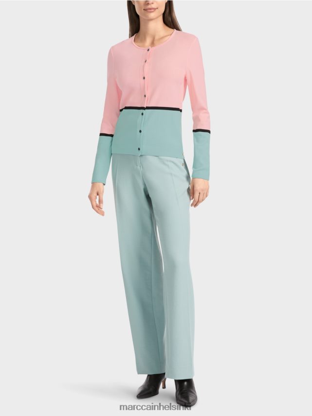 Marc Cain -kokoelmat Tässä trendikkäässä neuletakissa on nappisplakki ja mukana tulee pyöreä kaula. Se on valmistettu sekoituksesta materiaaleja viskoosin kanssa. Suora leikattu neuletakki on neulottu ja valmistuu myös sijainnissamme Saksassa. Yksittäisten osien jatkokäsittelyn suorittavat eurooppalaiset kumppaniyhtiöt. Tämä tarkoittaa, että esine on “neulottu Saksassa”.